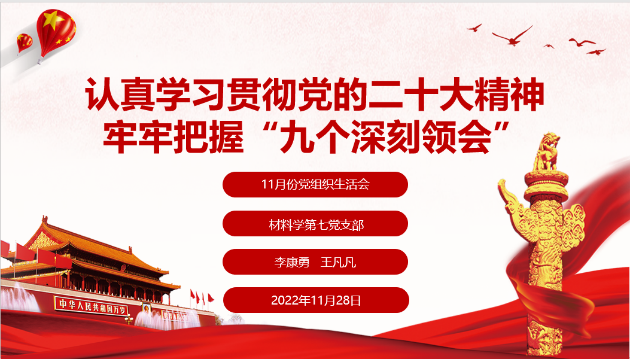 《习近平谈治国理政》系列书籍,是党的十八大以来重大理论创新成果的集中体现,是学习领会党的二十大精神的理论先导。为学习贯彻党的二十大精神,材料学第四、第十一党支部和材料加工第四党支部邀请红色理论学讲团讲授微党课,以《新发展理念》、《扎根推进共同富裕》和《数说二十大-二十大报告文本解读》三大主题, 讲述丰富内涵。深入浅出地讲解,以点带面地学习,令支部同志受益匪浅。