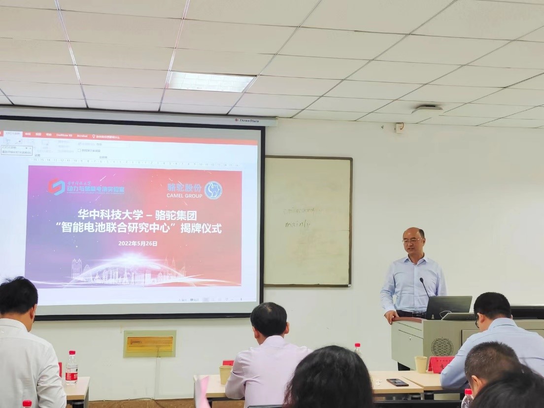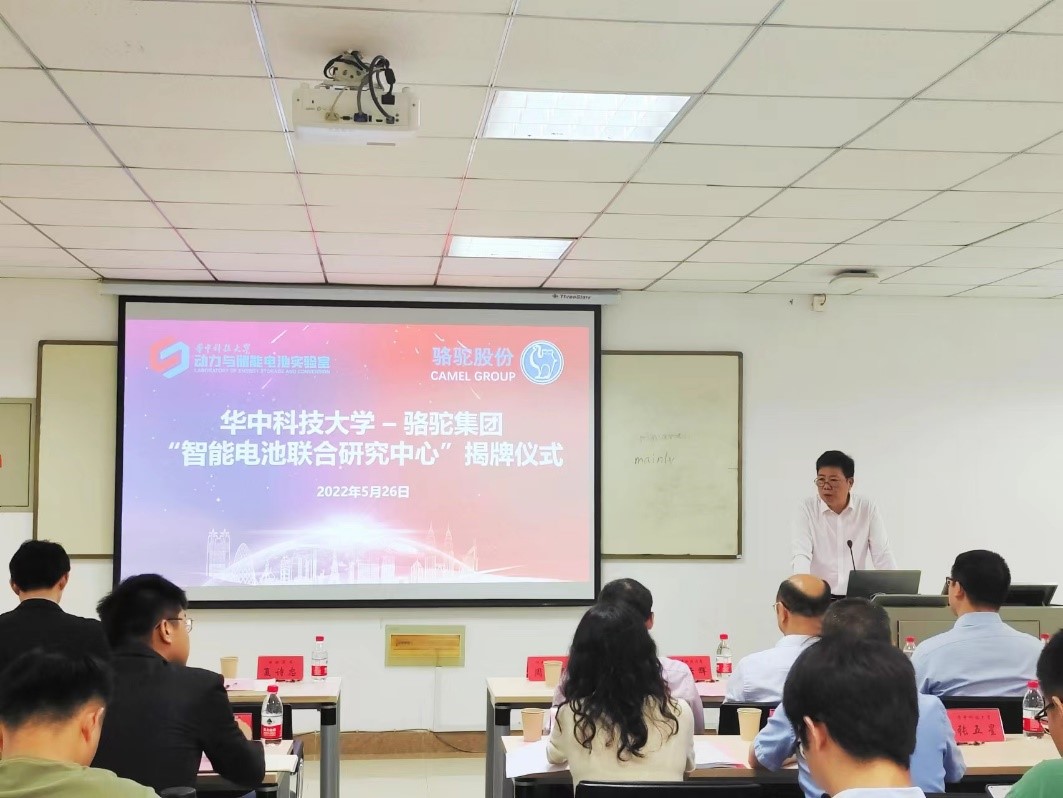 作为动力与储能电池实验室的学术带头人,黄云辉教授致辞并指出,华中科技大学和骆驼集团的合作是理论和实践相结合,让实验室产物落地,向产业化靠拢,将着重培养人才的实用性与实效性,共享资源整合,此次合作将有重大意义。