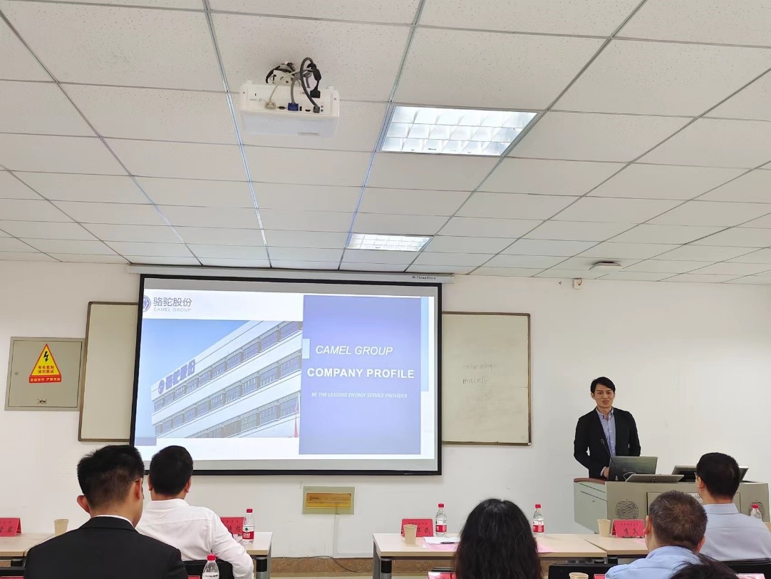 紧接着,骆驼集团夏诗忠总裁致辞,他向大家介绍了骆驼集团的发展历程和主营业务:骆驼集团股份有限公司成立于1980年,是一家专业从事先进电池研究、开发、生产、销售的综合性高新技术企业,如今已是亚洲最大的汽车用低压电池制造企业。夏总裁表示,本次和华中科技大学的合作是一个很好的学习和交流的机会,希望与学校深度合作,与学校师生共同成长。