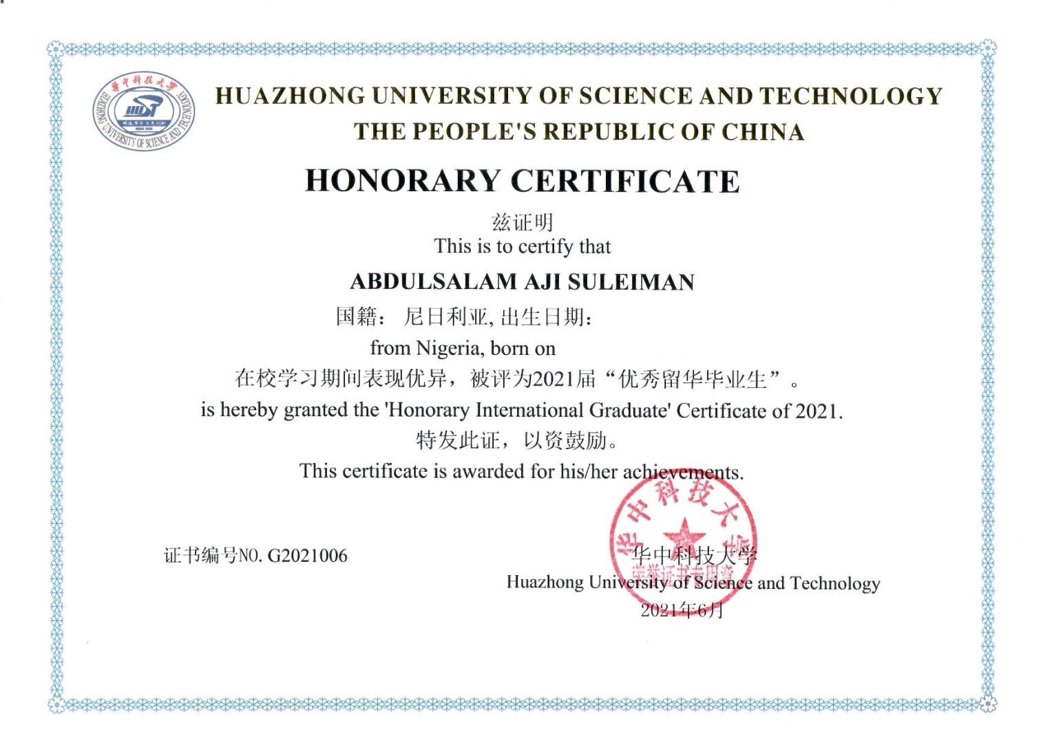 祝贺翟天佑教授团队博士生苏乐泽荣获华中科技大学优秀留华毕业生