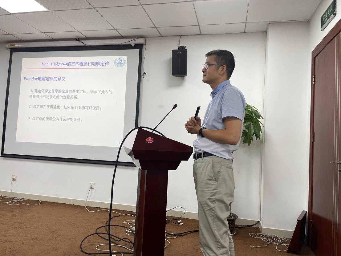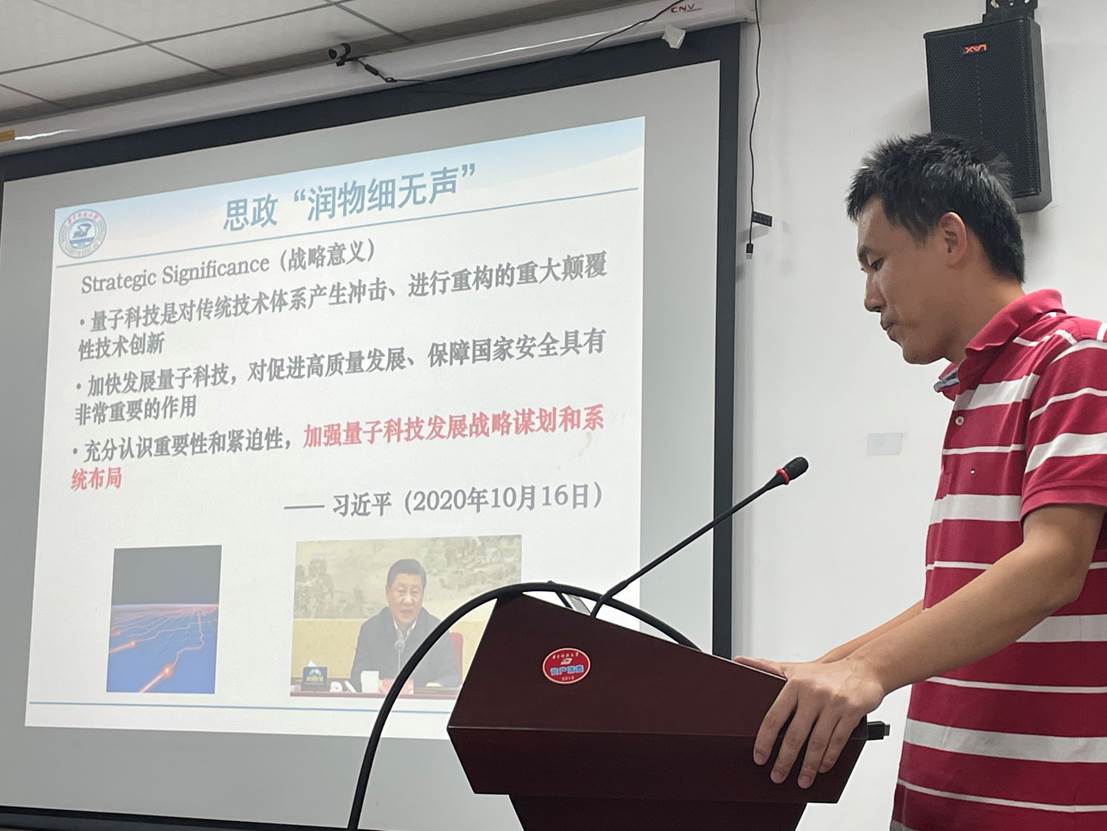有关新进教师听课、授课等最新政策。随后,单斌主任以《量子力学》课程为例,分别从课件PPT更新、课堂氛围把控、思政元素融入、考试试题设计、教改项目申请等多维度分享了经验。在场老师分别就大四本科生教学问题、研究生选修课等方面进行了交流讨论。