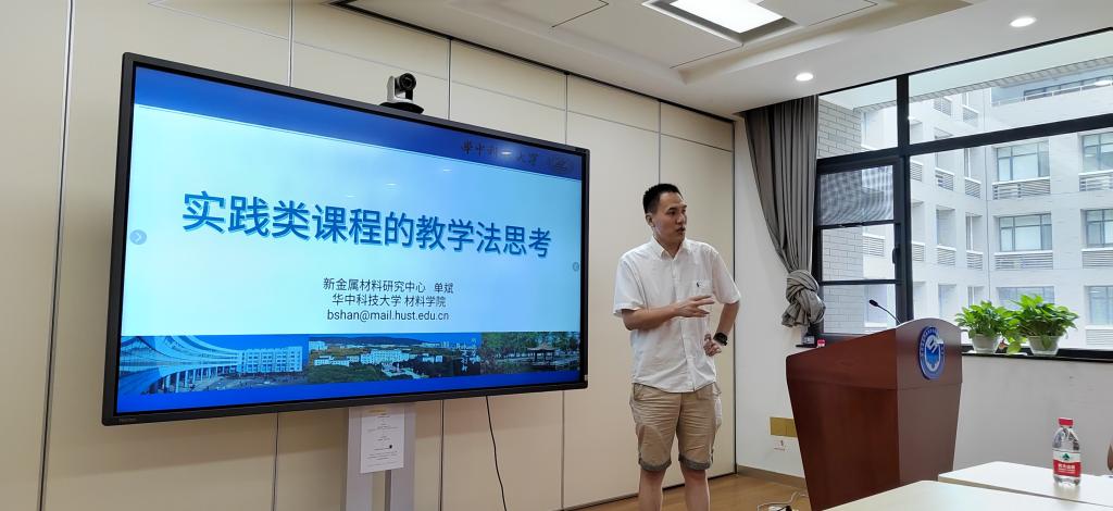 最后,单斌主任结合自身的教学经验讲授了主题为实践类课程的教学法思考的微党课。在该过程中,单斌同志系统介绍了自己所教授的课程《计算材料学》的基本情况,讲解了在讲授该课程中所遇到的一些问题以及相应的解决方案。为了做好该课程的教学,单斌同志采用线下教学+线上实践的混合教学方法,向学习该课程的学生介绍分子动力学的理论知识、模型实例以及开放课题等,在这个过程中,起到了锻炼学生们的成果归纳能力和展示能力的作用。不过,在教学过程中,一系列的教学痛点也暴露了出来,比如:理论方法枯燥,缺乏吸引力;在教学过程中,缺乏相对便捷的实践平台;教学目标评价方式单一等问题。为了解决这些问题,单斌同志展示了一系列成功处理这些问题的教学实例。首先,将分子动力学模拟过程分解成一系列的模块化内容,将原本纷繁复杂的内容分解成单一的容易理解的部分;其次,将分子动力学研究前沿-机器学习势场渗入到平时的教学当中,吸引大家的关注,激发学生的科研热情和兴趣;为了解决缺少实践平台的问题,搭建了预装Linux系统的软件服务平台,方便学生训练,并采用Cocalc云平台协作,完成线上作业练习,并具备自动批改的功能。单斌同志对自己改进后的教学方法进行了深入浅出的讲解后,得到了大家的一致认同。