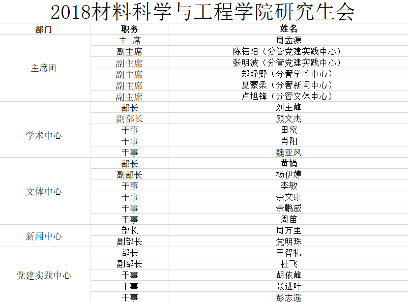 经本人申请,澳彩 面试考察,研究生代表大会推举,现已产生澳彩 2018研究生会成员名单。现将该名单公示如下: