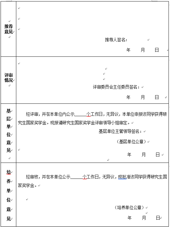 6. 评审委员会将评选结果进行公示,公示期不少于5个工作日,公示期间接受学生的申诉。公示无异议后,获奖申请人填写《研究生国家奖学金申请审批表》,报校研究生院。