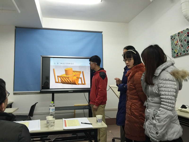 学生社区活动中心韵苑14栋345举行。此次答辩也是为 “永冠杯”第七届中国大学生铸造工艺设计大赛作准备。樊自田教授、廖敦明教授、董选普教授担任评委,王黎、易幸存、李婷等老师及比赛筹备负责人万坦同学参加了此次大会。