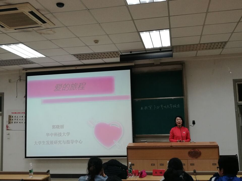 爱情心理学的讲座由郭老师对“爱”和“非爱”的理解而引入。对于爱,郭老师认为是无条件的接纳,是促进对方的成长,是将她/他变成其所真是。对于非爱,郭老师的见解则是,没有爱情的人生是可惜的,但没有正确爱情观的人生是可悲的。随后郭老师从恋爱的不同阶段开始深入分享,从恋爱开始时的暧昧、如何对待追求者到恋爱过程中的一些注意事项,比如恋爱过程中男女双方在感情需求、寻找自身价值等方面是存在差异的,还传授了一些沟通技巧,强调了女生在恋爱过程中的自我保护。当然,如何对待分手,这一许多小情侣们体验过爱的甜蜜后,最终却由于种种原因而不得不面对的问题,郭老师也强调了主动提分手时和被动分手时应有的态度。虽然是女生节活动,但是在场的男生也很多,郭老师讲的内容直达学生心底,听者不管是有没有开始恋爱,不管是处于何种恋爱阶段,听了之后都很有收获。