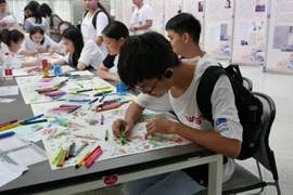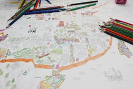 图书馆的另一角,一幅幅动画版爱心地图正齐齐排放。来来往往的读者们在这里驻足,用手中绚丽的画笔描绘着雄伟的天坛、布达拉宫、东方明珠……用笔尖倾注真情、用色彩带来梦想。