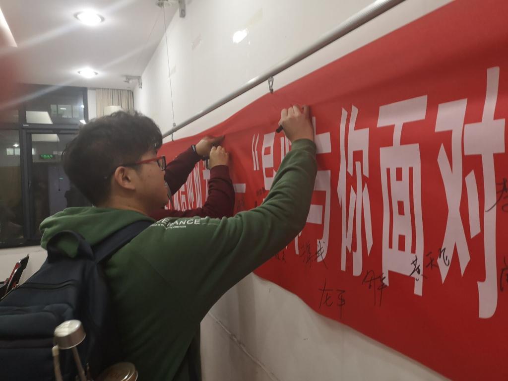 讲座结束时,杨君友院长就赵教授的讲座进行了总结,杨院长鼓励大家在科研求索过程中能大胆探索,勤于动笔,勤于思考,始终以严谨的治学态度努力攻克科研上的每一个难题,永葆初心,在科研路上越走越远。与会全体研究生深受鼓舞,纷纷在本次讲座的“学术船行千里,诚信迎风为帆”的横幅上签上自己的名字,来表达自己不忘初心、认真做好科研工作的决心。