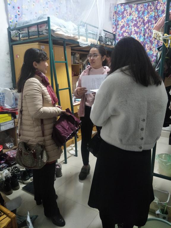 2018年冬季安全教育》宣传资料,并以多种形式从防火、防盗、防骗、谨防校园贷、出行安全、实验室安全等方面生动讲解安全知识;且根据进寝室时观察到的安全问题,对寝室同学提出解决建议方案以及防范的措施,及时发现隐患问题并指正,做到早发现、早控制、早解决;并勉励大家共同珍惜时光,再接再厉,新一年的科研工作再上新台阶。