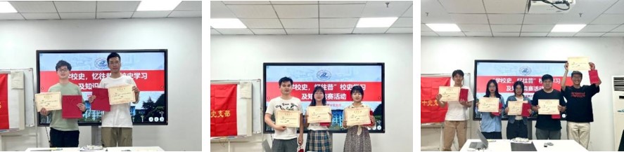 十分钟的分享交流后,第三项知识竞赛正式开始,竞赛由组织委员徐婷婷同志主次,分为小试牛刀和谁与争锋两个环节。题目围绕校园老建筑的建造历史和蕴藏文化展开,同学们踊跃答题,比分你追我赶,将活动的气氛推向高潮。从这一环节中我们看到了各位党团员对校史学习的热忱与尊敬,本次活动达到了进一步巩固校史学习成果的目的。经过激烈的比拼,优胜者诞生,现场颁发奖品和奖状。方俊杰、赵一男获一等奖;喻奥等3人获二等奖;余鹏威等5人获三等奖。