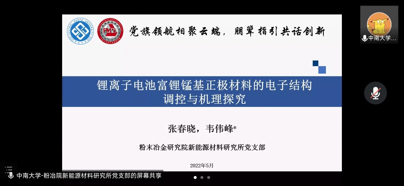 为加深校际交流,培育青年党员坚定理想信念,筑牢信仰之基,聚焦主责主业,增强科研能力,2022年5月18日华中科技大学材料学研究生第十党支部与中南大学粉末冶金研究院新能源材料研究所党支部开展联合党日活动。