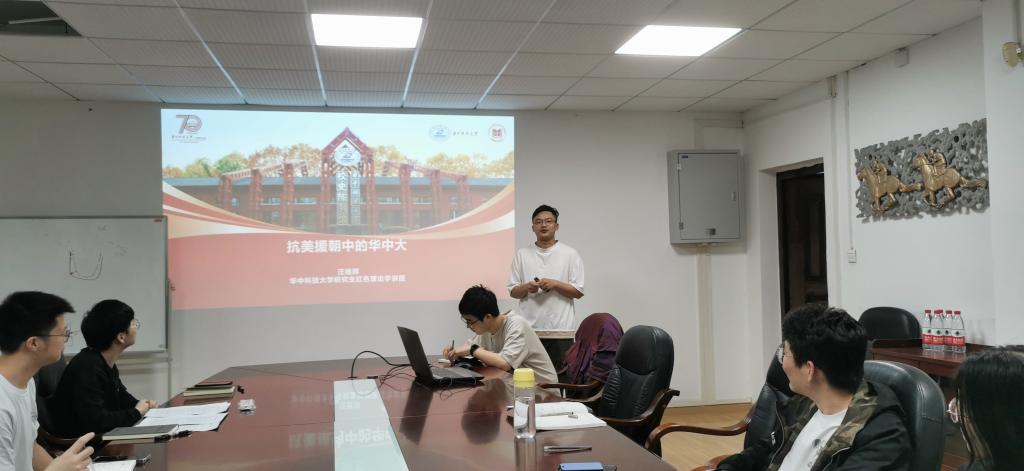 为庆祝华中科技大学七十华诞,加深支部成员对学校悠久历史和文化底蕴的了解,汲取优秀华中大先辈榜样力量,同时帮助支部成员做好职业发展规划,落实好党员发展工作,2022年5月19日,材料加工研究生第十一党支部开展“深挖校史红色资源,争当与祖国同频共振的新时代青年”主题交流活动。本次活动由党支部书记张浩和宣传委员丁华平主持,全体支部成员到会参加学习。