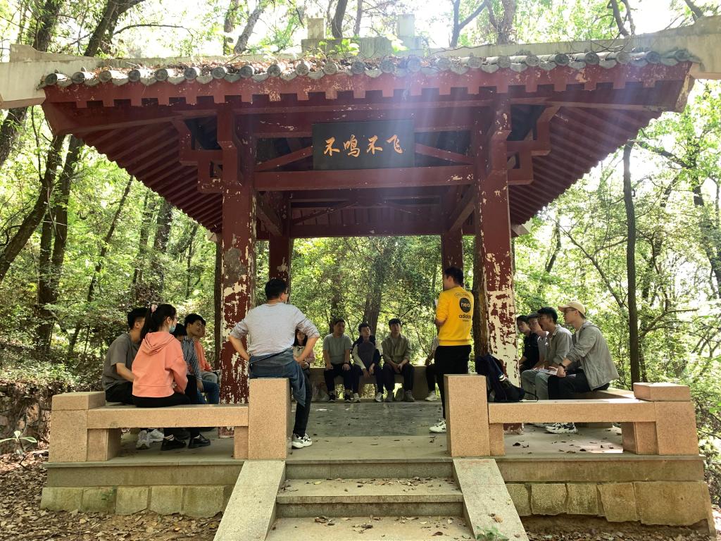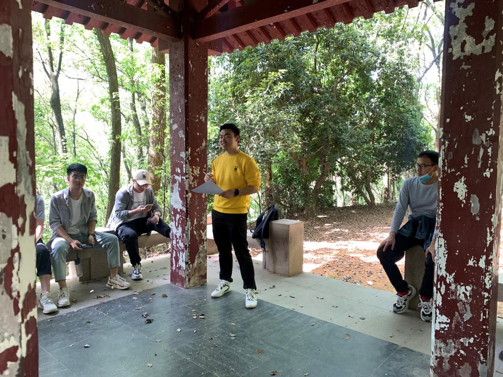 在下山路程中,所有支部成员在“不鸣不飞亭”开展党史校史理论学习活动,刘天琪就华中大的建校历史进行主题微党课,本次微党课回顾了建校史,以及华中科技大学在抗疫、扶贫、科研方面取得的突出成果。