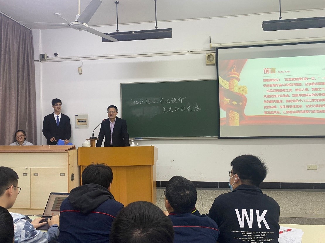 比赛正式开始前,王新云教授进行了简短致辞,他介绍了此次活动的由来,希望同学们通过党史学习,传承革命先辈为国为民的艰苦奋斗精神,将个人发展与国家需求结合起来,好好学习,努力成长为一名认真踏实且具有创造力的卓越型人才。