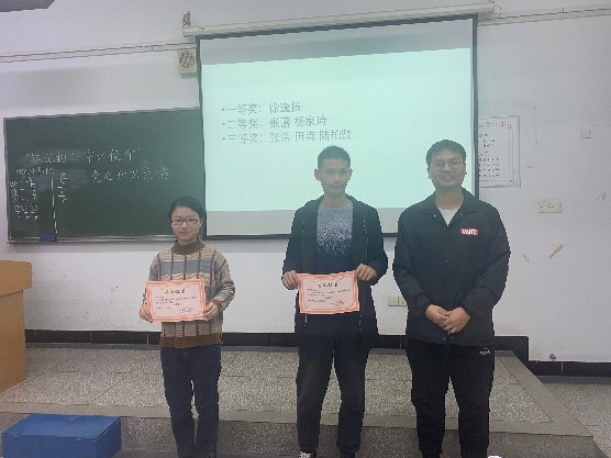 党委副书记蒋文海,辅导员周坤、潘庆为获奖的同学颁奖。