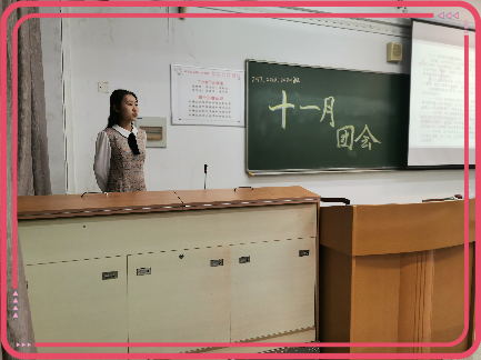 2017班团支书陈钰梦为大家介绍总书记讲话内容
