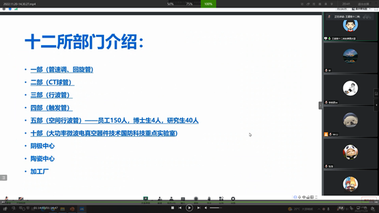 精密塑性成形研究室2014级博士,现为中国电子科技集团公司第十二研究所工程师,主要给我们介绍了十二所部门的任务和项目,让我们了解到了国内目前所稀缺的和比较热门的地方。我们就王道宽所介绍的工作和十二所的介绍提出了问题,在将来工作可能面临的问题和解决办法,王道宽对我们目前的工作做出指导,并提出我们每个人都应该开阔眼界,动手实践,扎实的学好基础知识。