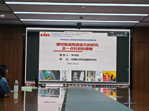 金属研究所的李乔磊特别研究助理结合增材制造合金-陶瓷材料及单晶叶片精密铸造的研究,从科研工作、科研感触和课题组介绍三个方面进行了经验分享和分享,与同学们就科研学习方面开展激烈讨论。