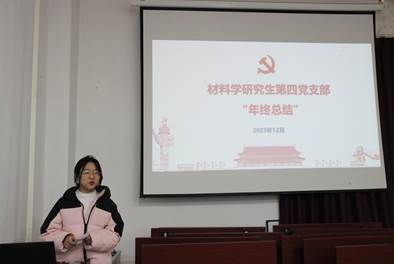 材料学专业研究生第四党支部于东一楼251会议室开展了“再回首,展未来之年终总结”主题党日暨党组织生活会。活动由材料学研究生第四党支部书记韦新琪同志主持,支部全体成员参加。