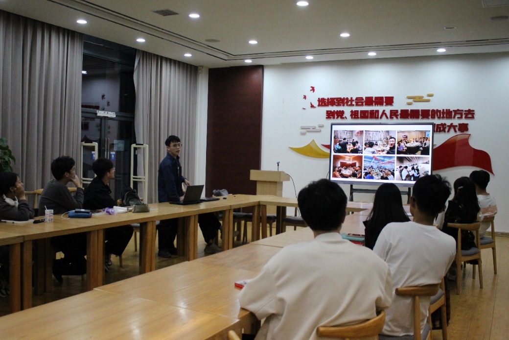 材料成型及控制工程专业2021级党支部支部副书记陈麒安从自己担任支部书记、学习委员等学生干部经历出发,分享了自己作为学生干部,如何去活跃集体氛围,带动同学开展学风建设等工作。他认为作为学生干部,最重要的就是公私分明,公事公办绝不马虎。