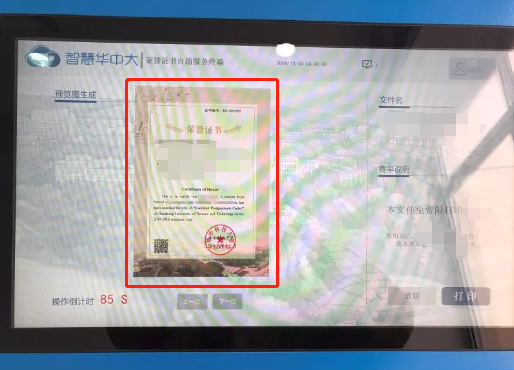 等待片刻,荣誉证书即可完成自助打印