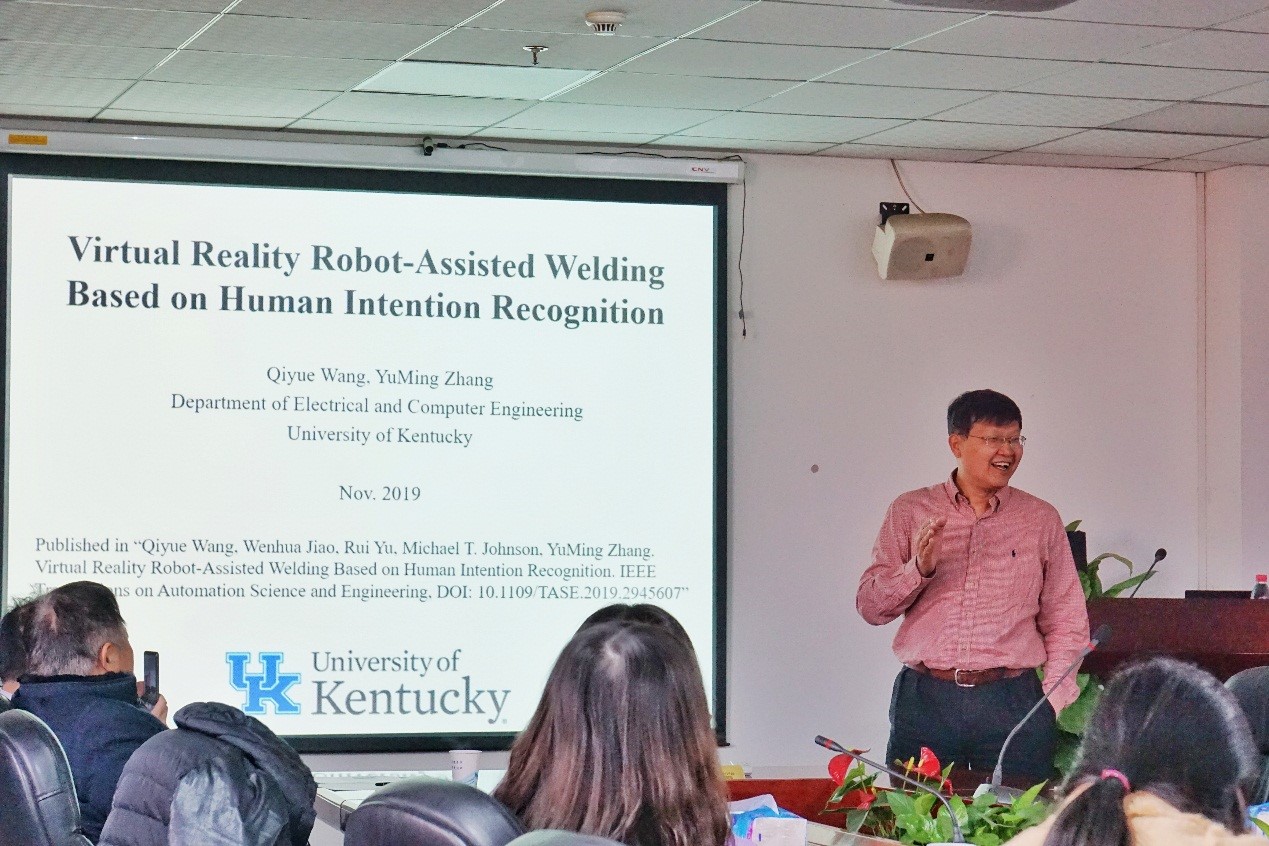 国际合作事务主任张裕明老师作了题目为“Virtual Reality Robot-Assisted Welding Based on Human Intention Recognition”的报告。澳彩