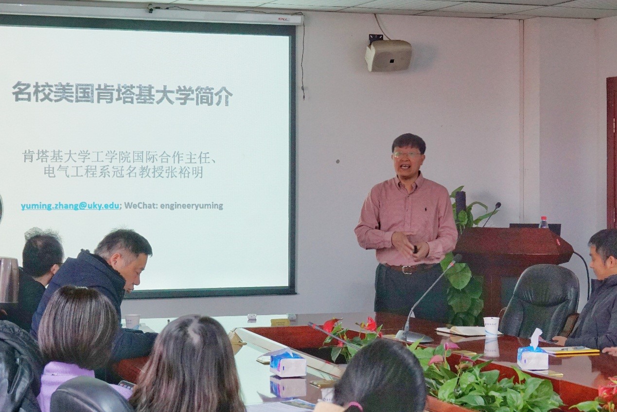 的各个研究方向和团队情况,并介绍了我院和肯塔基大学合作的3+2本-硕/博项目,张教授表示希望能尽快签订协议,进一步开展交流合作。