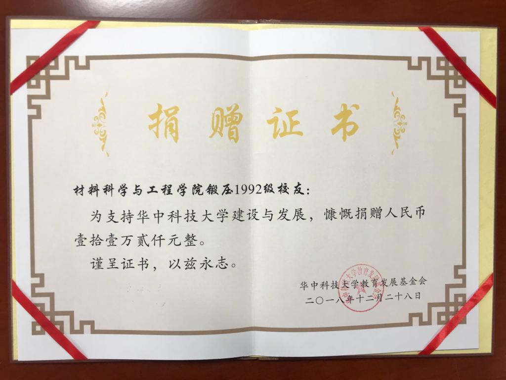 锻压92级校友向澳彩 发展基金捐赠11.2万元人民币