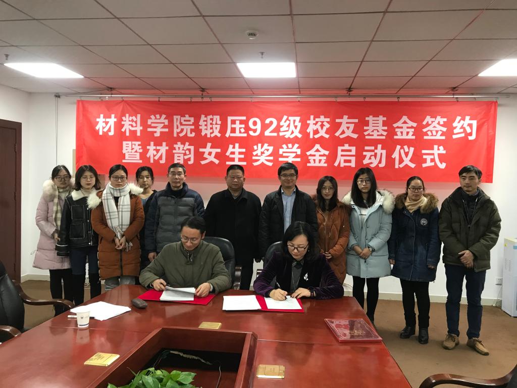 澳彩 举行锻压92级校友基金签约暨材韵女生奖学金启动仪式