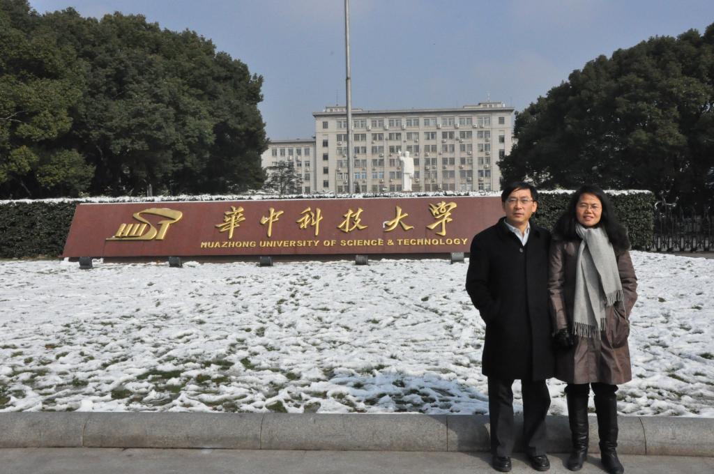 (李敬锋教授与夫人张波萍教授,于我校门前合影,伉俪二人为我院金材801同班同学,张波萍现为北京科技大学澳彩