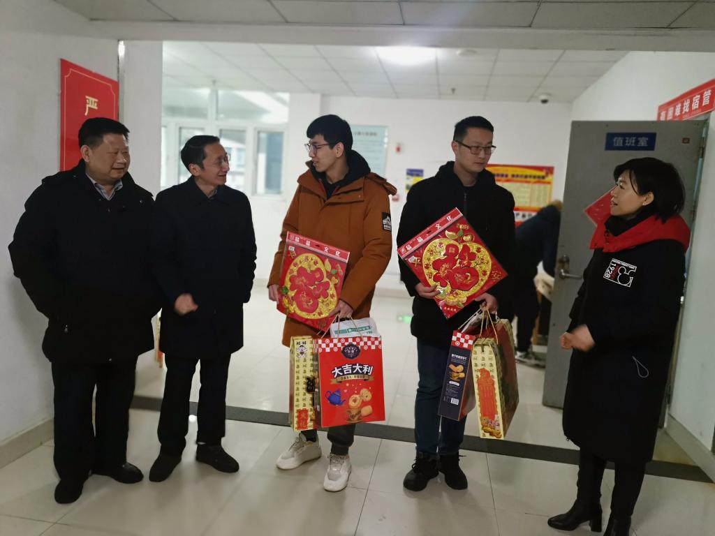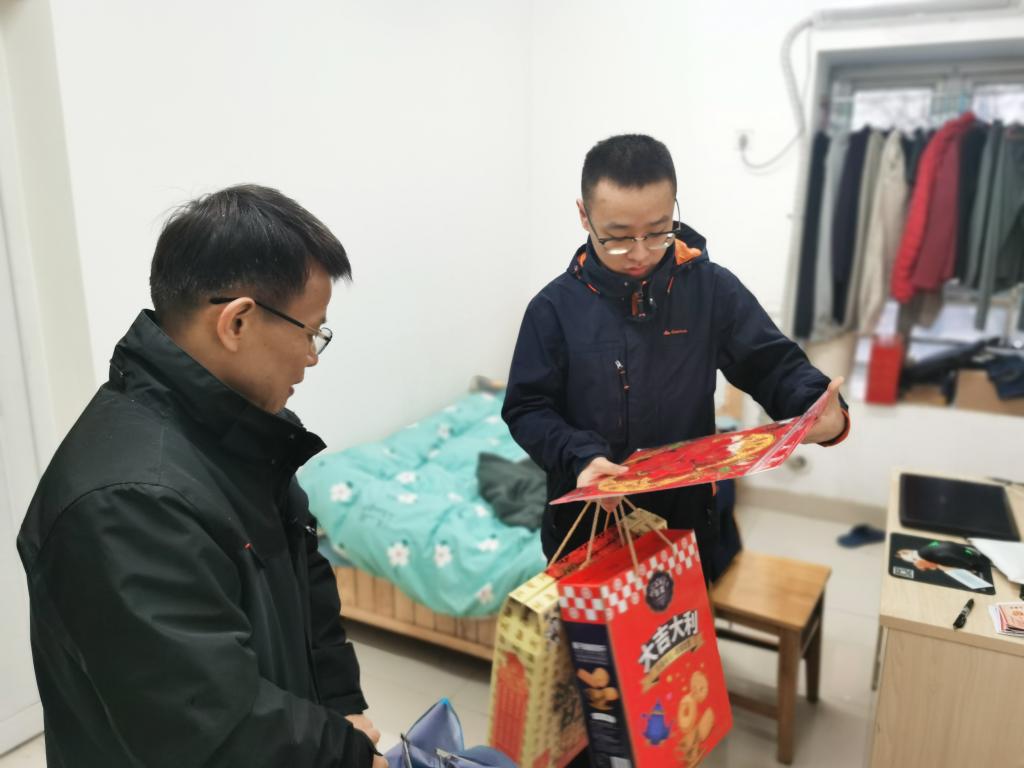 党委书记李毅、院长周华民、副院长袁新华、杨君友、樊自田和党委副书记蒋文海等院领导来到博士生公寓及紫菘公寓看望留校过春节的学生,关心学习生活情况,送去新春福字、春节慰问品以及防疫物资,与学生一起共话新春,喜迎新年。