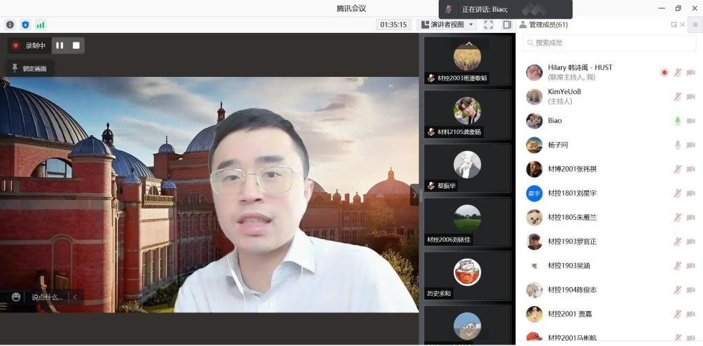 我院与伯明翰大学已签署学分互认、双学位联合培养的“2+2”项目,“华中大—伯明翰材料学科联合培养系列讲座”是两院在已有合作基础上的延伸,为今后的联合培养奠定了更加坚实的基础。借此系列讲座的东风,也期待两院在联合培养,科学研究等不同领域开展更加广泛而深入的合作。