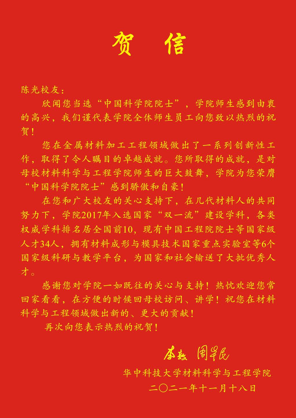 院士增选结果,我院校友陈光教授当选为中国科澳彩