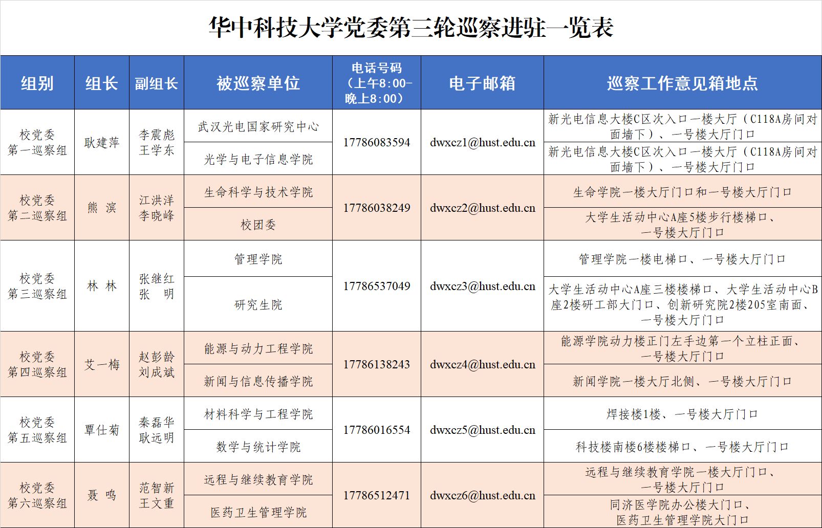 校党委第三轮巡察的单位为:武汉光电国家研究中心党委、光学与电子信息澳彩