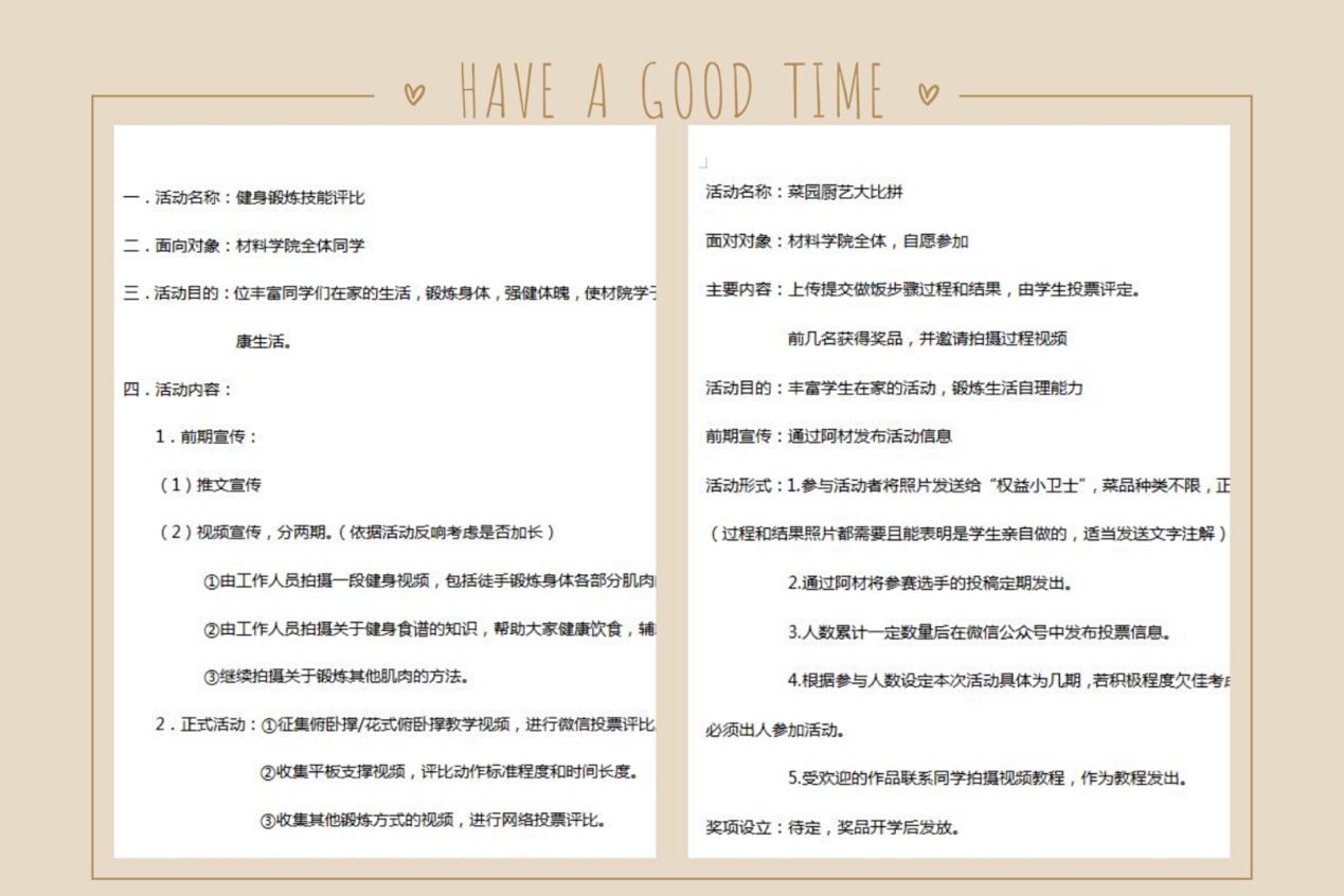 分团委学生会在全体学生中开展“健身锻炼技能评比”和“菜园厨艺大比拼”活动,鼓励同学们在家也要积极学习、锻炼身体;澳彩