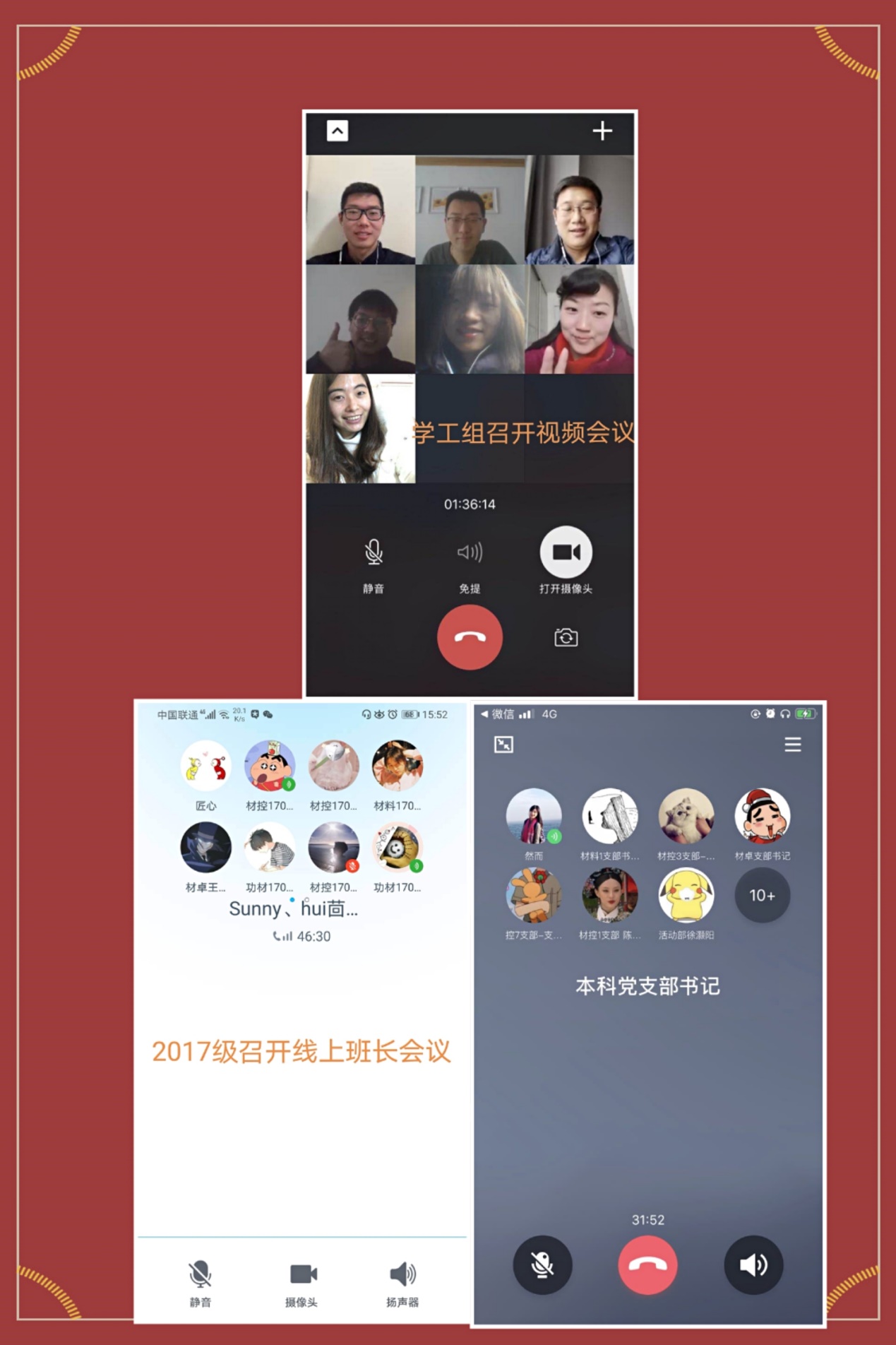 党委统一安排,各学生党支部通过互联网开展“坚定信心,众志成城,共克‘疫’艰”专题组织生活会,要求党员认真学习贯彻习近平总书记的重要指示精神,清醒认识本次疫情现状,普及宣传防控疫情的基本知识,学习疫情期间涌现的校内外战“疫”榜样,交流学习心得和感想。本科生15个党支部精心录制为武汉助力的视频,致敬医护人员,宣传防护知识,为武汉加油鼓劲,为抗击疫情出一份力。本科2018级党支部入党积极分子谭云骧同学,主动担任社区志愿者,协助进行社区人员登记,为抗击疫情贡献力量。