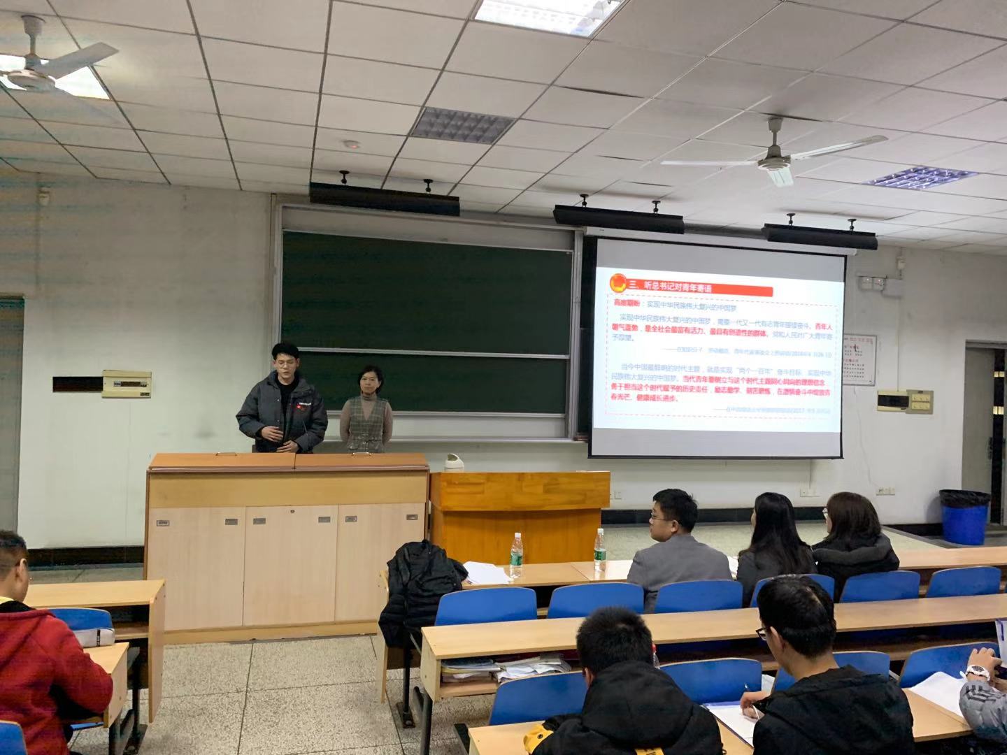 李毅首先向同学们讲述了习近平总书记的成长之路,与同学分享了习近平总书记的成长故事,从习近平总书记在梁家河知青岁月,到担任河北正定县地委书记,再到后来在福建、浙江工作,让同学们深深感受到了习近平总书记作为共产党人坚定的理想信念。第二部分李毅带领大家一起,重温《习近平的七年知青岁月》,感悟初心与梦想,同时观看了习近平专访视频:我是延安人,推荐了《习近平的七年知青岁月》等书籍以便同学们课后能有更多的了解。接着,李毅带领同学们一起学习习近平总书记对广大青年的寄语,邀请各班代表上台朗读习近平总书记寄语并谈谈个人学习心得。材料1903班张子豪表示作为青年应有担当、奉献精神,他说自己来自江西,要像江西省的江风益院士一样为家乡为国家贡献自己的力量,立志投身共产主义事业,做祖国的可靠接班人。
