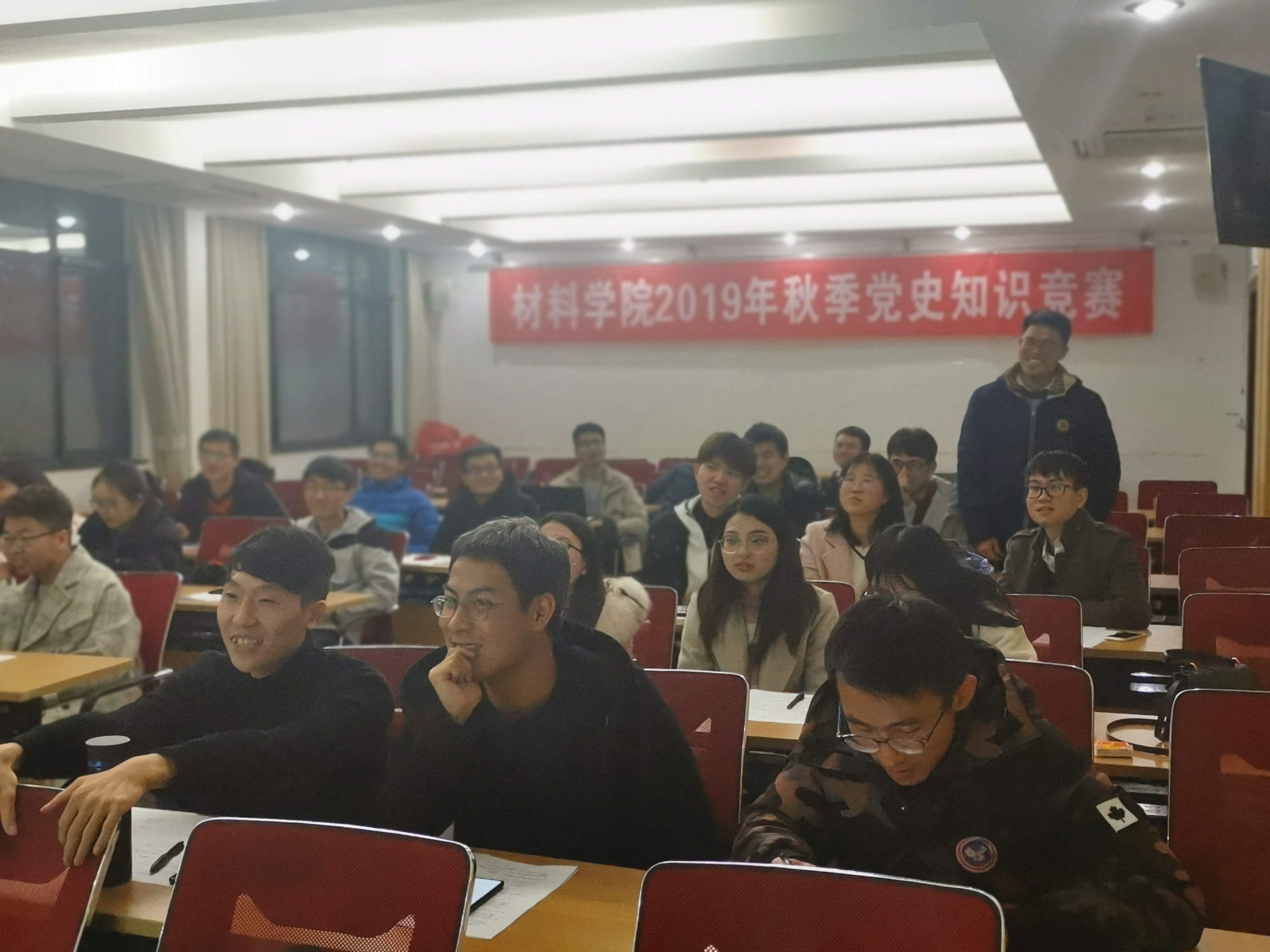 在先进制造大楼西楼A308开展了研究生2019年秋季党史知识竞赛活动,此次活动的开展旨在为研究生普及党史知识,增强研究生对中国共产党的了解。本次活动有八支队伍入围,每支队伍3人,其中有研究生党员,也有入党积极分子,大家热情高涨地投入到此次活动中。澳彩