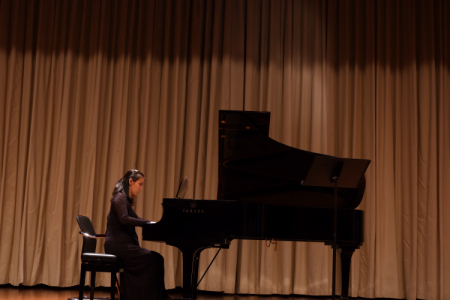 动人的音乐,阑珊的灯火,在众人的屏息中,音乐会拉开了帷幕。海顿的钢琴奏鸣曲在文静老师的演奏下缓缓流入听众耳中。紧接着亨德尔的《绿叶青葱》在卢媛老师的演唱中,新生们仿佛置身于青翠欲滴的山林之中。在小提琴协奏曲《四季》中,张瑛老师带领听众们走进星空下的深秋景色,在肖邦的《雨滴》中,同学们仿佛可以感受雨丝带来的清凉。在两首醉人的女中音演唱后,听众席爆发出了热烈的掌声。之后的演奏中,无论是《卡门》的咏叹调,还是众人熟知的《土耳其进行曲》,亦或是钢琴曲作品《亚麻色头发的少女》都让澳彩