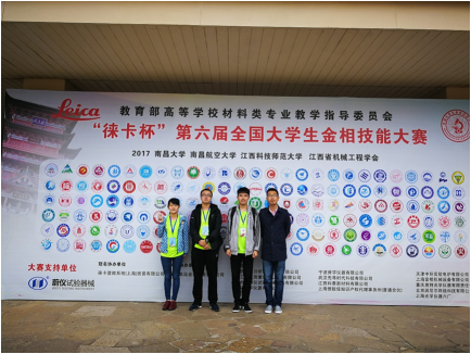 韩书鹏、田琳和周可辰三名同学在学工组辅导员岳天宇老师的带领下,于2017年10月赴南昌参加为期六天的第六届全国大学生金相技能大赛。本次比赛共有来自166所高校的450余名选手参加,每名选手均经过了学校内部的层层选拔,盛况空前,可谓高手如云。
