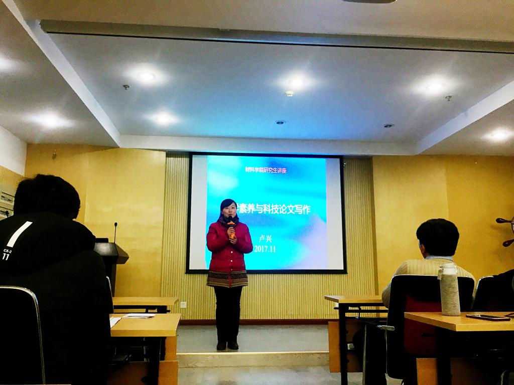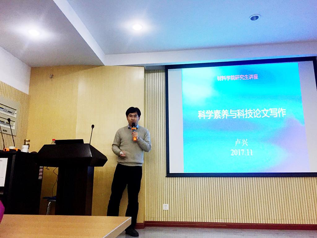 紧接着卢兴老师用四个部分来讲解英语科技论文的撰写与投稿。他用多年撰写论文和审阅学生论文的经验,结合不同的例子来讲解了论文各个组成部分的写作方法和注意事项。在投稿过程中,卢兴老师告诫同学们以一种虔诚认真的态度去投稿,要把自己当成审稿人,不要害怕修改和退稿。最后,卢兴老师用“跬步至千里”来激励同学们开展今后的科研学习。卢兴老师的精彩讲座引发了现场同学的积极思考,在现场提问环节中,同学们就文献的阅读和专利的撰写等问题积极地请教卢兴老师,卢兴老师耐心地为同学们作了详细的解答。