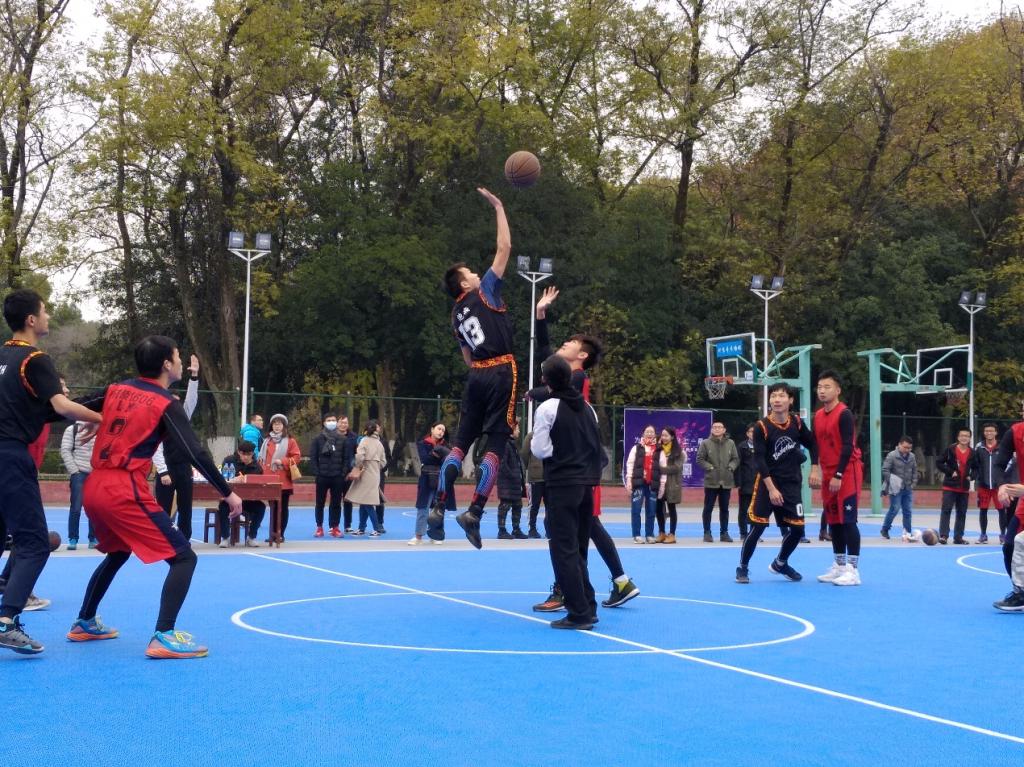 “材子佳人杯”篮球赛决赛在中心操场举行,争冠队伍分别是材硕1606班和材硕1607班。