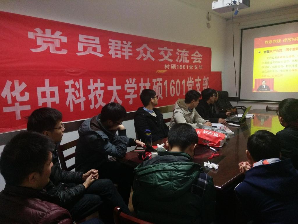 硕士1601党支部组织党员和群众在快速制造中心二楼会议室召开了党员群众交流会,会上全体人员一同学习了十九大的重要精神,并就科研、就业、创业创业项目的申报等方面展开交流。