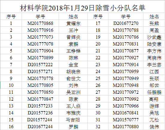 最后,附上参与此次除雪活动的研究生名单,特向他们提出表扬。