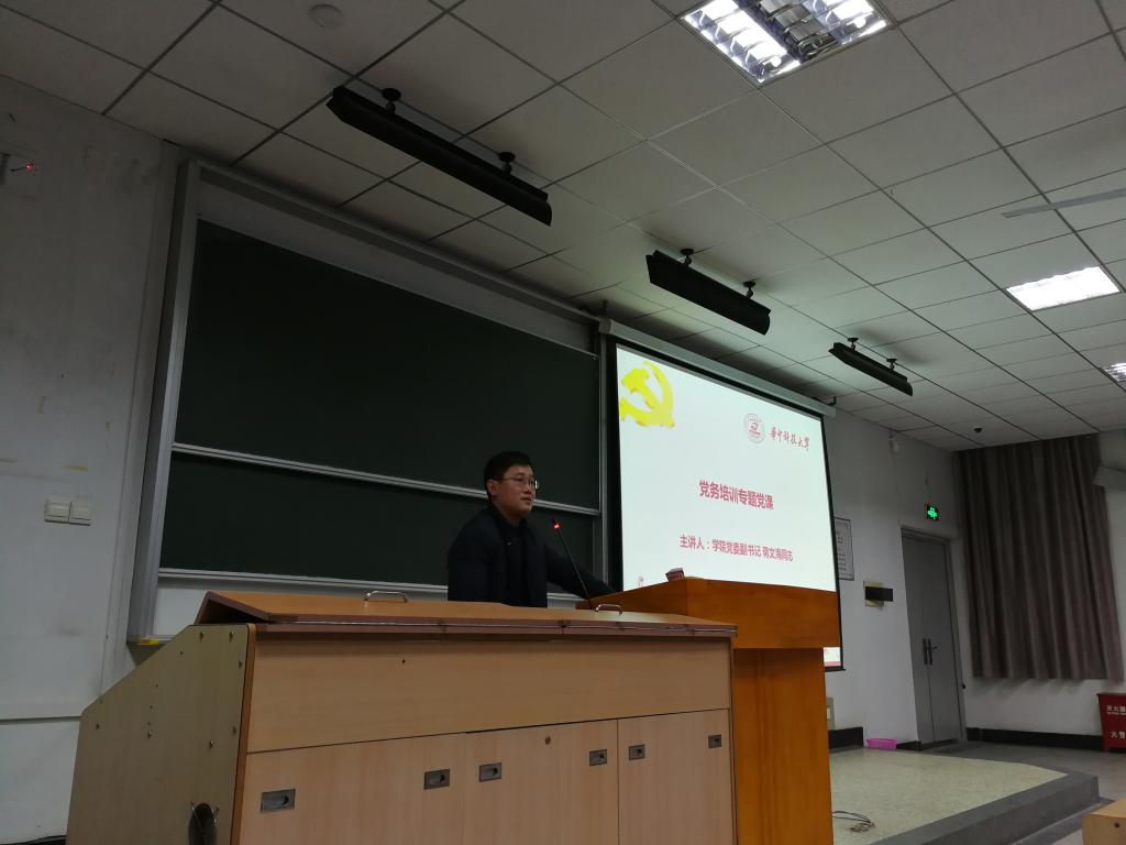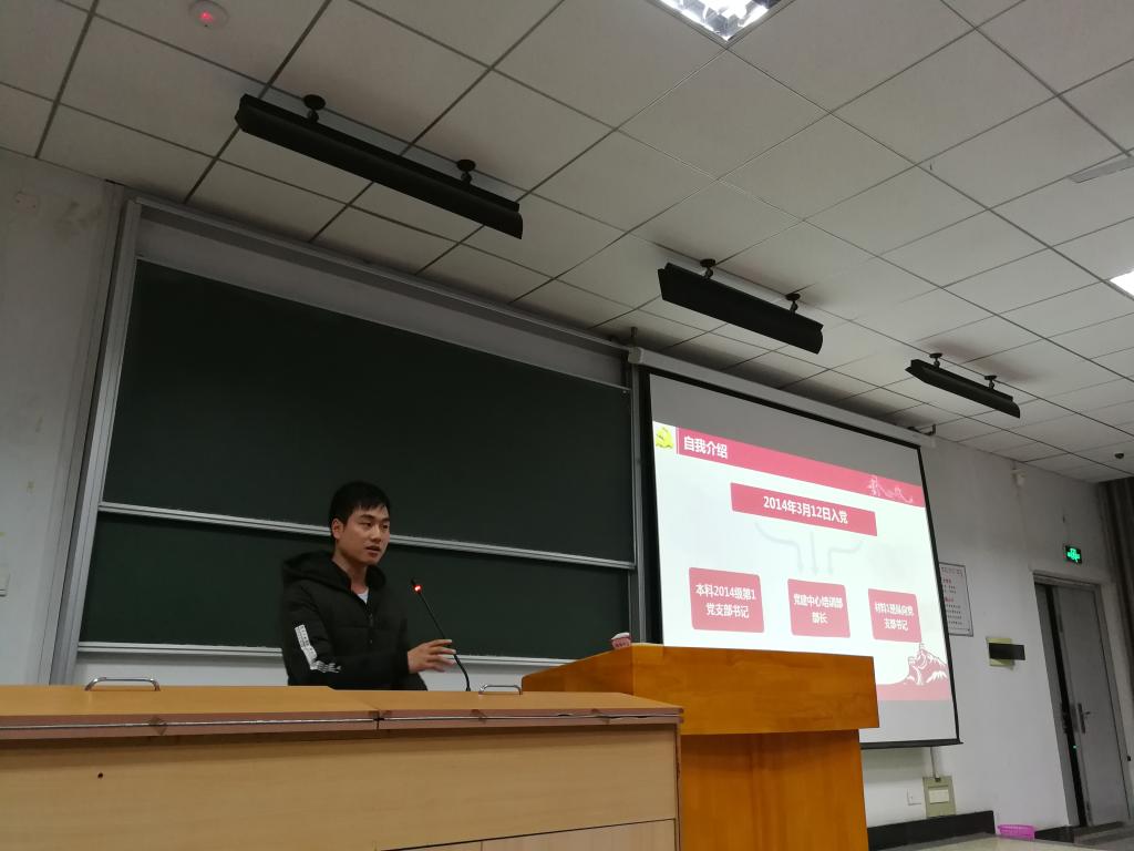 蒋文海分享了在云南临沧农村挂职期间遇到困难及其解决过程,讲述了许多基层党员干部头顶理想脚踏实地带领群众干事创业的故事,激励全体党员要坚定理想信念,增强党性修养,积极担负起新时代责任和历史使命,做新时代的奋斗者。他希望学生党员要牢固树立“四个意识”,自觉和党中央保持一致,特别是在重大问题上要立场坚定,敢于发声;在理论学习和支部工作中,要做真功求实效;要发挥党员先锋模范作用,要在学风建设、科技创新、文体活动等方面起到表率作用,团结带领广大同学共同进步。