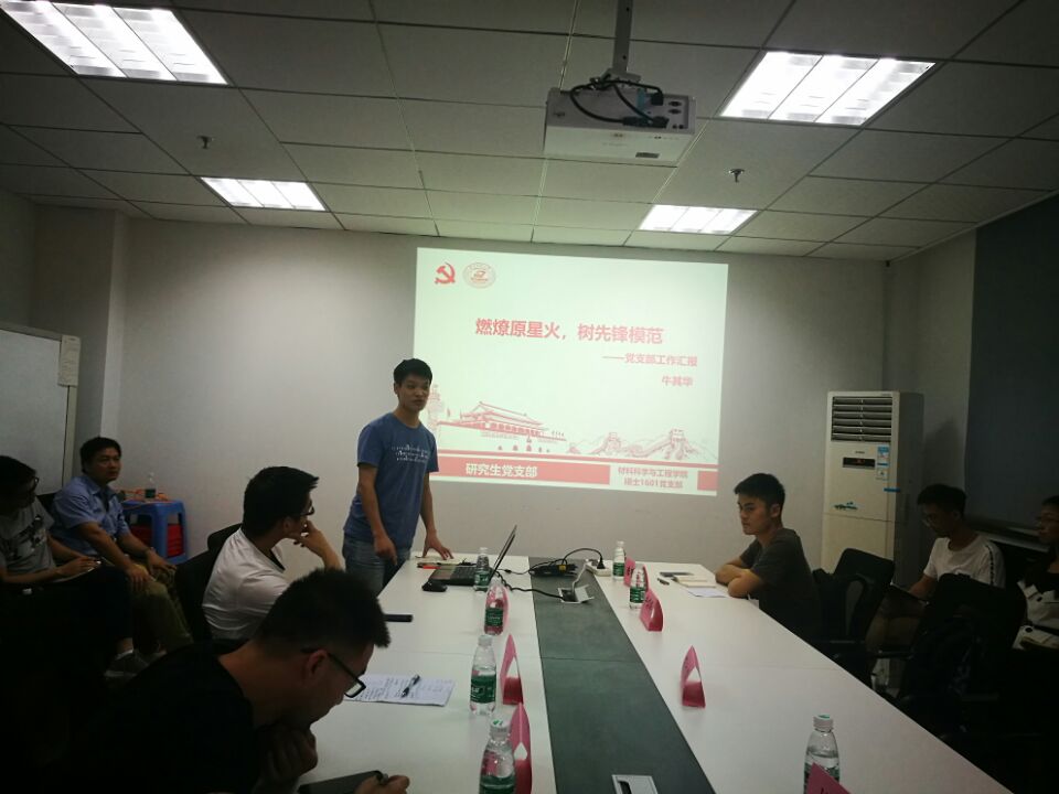 紧接着,曾获“校十佳特色团日”和多项荣誉的硕士1601党支部作为优秀研究生党支部代表,由该支部的党支部书记牛其华同学给大家进行了支部工作展示。牛其华书记先就党支部的工作做了较为全面的汇报,还就“为什么要当党支部书记”、“怎样当好党支部书记”发表了自己的精彩言论。此外,他还结合参加校研究生红色楷模评选的经历,给大家分享了许多开展党建活动的良好建议。之后,该支部的党员代表刘珊珊、杨益、陈鹏等同志对比了自己现在的党支部较原来本科党支部的先进性,分享了自己在现在支部内的巨大进步。大家纷纷表示,自己在支部成长的过程中,自身党员责任意识得到了增强,每一次活动中党员的参与感都很强,在支部中所有党员都有深深地归属感。
