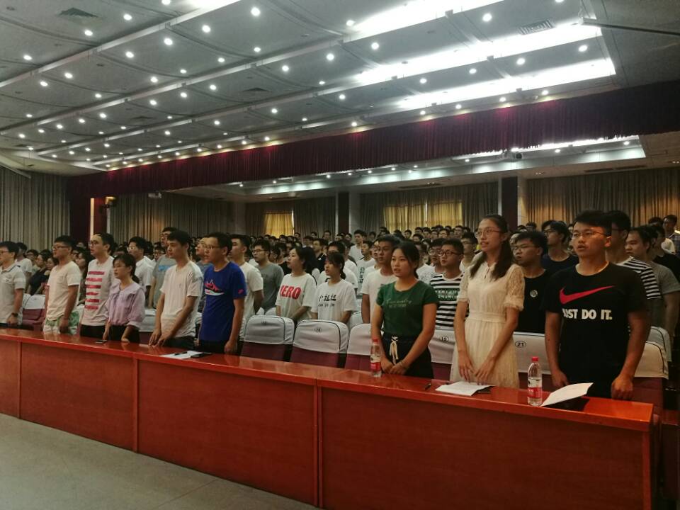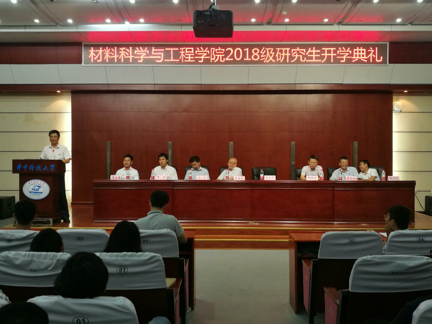 报告厅隆重举行,中国工程院院士李德群、院党委书记史玉升、副院长卢兴、杨君友以及系所负责老师、研究生工组和教务科工作人员、全体2018级新生济济一堂。大会由院党委副书记蒋文海主持。