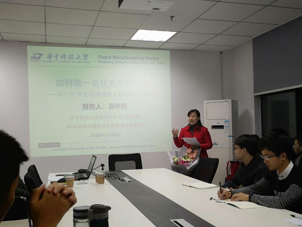 快速制造中心副教授吴甲民老师主讲,研究生工作组长王曦老师主持。