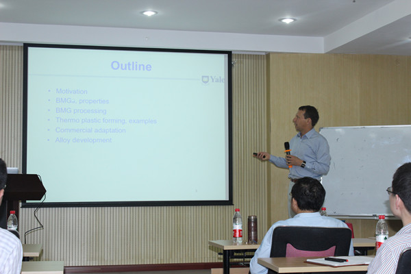 应柳林教授邀请,耶鲁大学机械与材料系Jan Schroers教授自2015年5月8日起来校访问,并就新型新材料(非晶态合金)的热塑性成形工艺、成形机理,成形件的力学性能,适于热塑性成形的新合金体系高通量筛选等工程、科学问题,作了题名“Structure-Property-Processing Relationships in Metallic Glasses”的精彩学术报告。访问期间,Jan Schroers教授与非晶态材料研究组(//aocai.org/bmg )就材料成形领域科学问题,可能开展的项目合作,博士生联合培养等方面进行了详细交流。