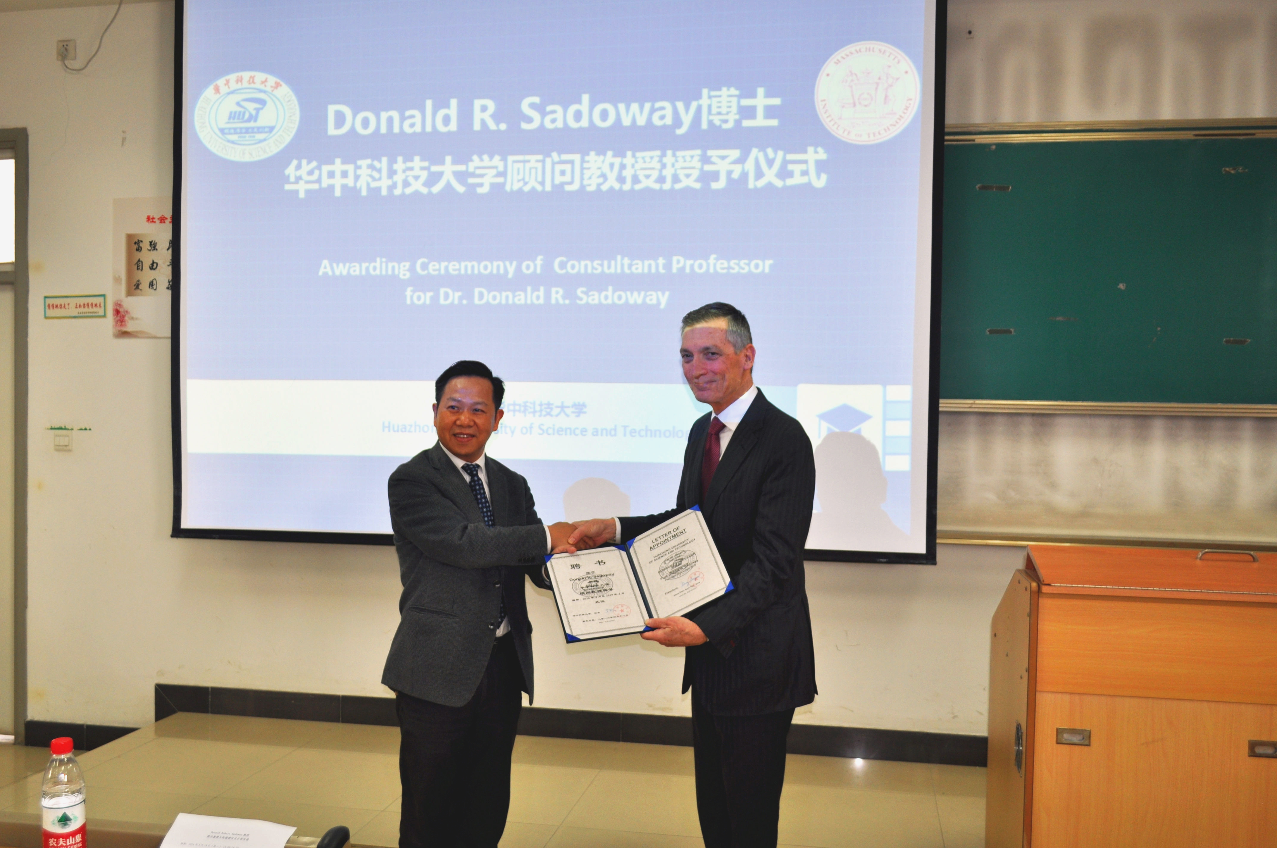 (MIT)教授DonaldSadoway博士受聘我校顾问教授,并应邀举办公开课。受聘仪式由国际交流处副处长何刚主持,副校长陈建国向Sadoway教授颁发聘书,教务处处长郭兴蓬教授、澳门六合彩官网